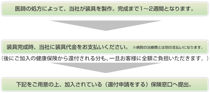 医師に治療用装具が必要と認められた場合、加入している健康保険から療養費の還付が受けられます。