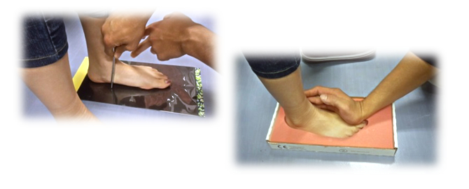 足の形は千差万別です。ですので、個人に合わせて足の採寸と採型を行います。